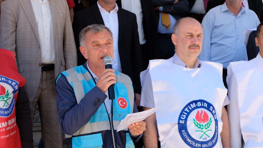 Eğitim çalışanları arasında ayrımcı ve dışlayıcı bir bakış açısının olduğunu öne süren Aslan, “Bugün burada toplanmamızın, hep birlikte ses vermemizin ve ortak iradeyle söz söylememizin nedeni eğitim yönetiminin yükünü omuzlayan, sorunları sırtlayan millî eğitim uzmanı, bakanlık müfettişi, il millî eğitim müdürü ve yardımcısı, ilçe millî eğitim müdürü, araştırmacı, şube müdürü, eğitim müfettişi, eğitim müfettiş yardımcısı, eğitim uzmanı kadrolarında görev yapanlardan aranan hizmet süresini tamamlayanlara da uzman öğretmenlik/başöğretmenlik unvanına dayalı hakların tanınmamasını protesto etmek, Öğretmenlik Meslek Kanunu tasarısında bu konudaki değişiklik talebini ve ihtiyacını haykırmaktır. Anayasa Mahkemesi’nin kısmî iptal kararı sonrası, Bakanlığın girişimiyle yeni bir Öğretmenlik Meslek Kanunu tasarısı hazırlandığını, Cumhurbaşkanlığında son şekli verilen tasarının TBMM'ye sevk edileceğini biliyoruz. Ancak taslağın görüşüldüğü süreçte, çeşitli bahanelerle eğitim çalışanları arasında ayrımcı ve dışlayıcı bakış açısının devam ettirilmeye çalışıldığını görmekteyiz” ifadelerini kullandı.