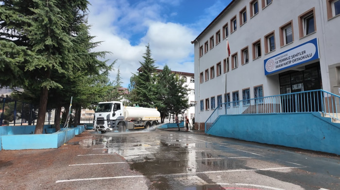 Birçok okulda sürdürülen temizlik çalışmaları kapsamında okul bahçeleri, oyun alanları çöplerden ve otlardan arındırılırken, tazyikli su ile yıkandı. Okulların ortak kullanım alanlarında ilaçlama çalışması gerçekleştirildi.