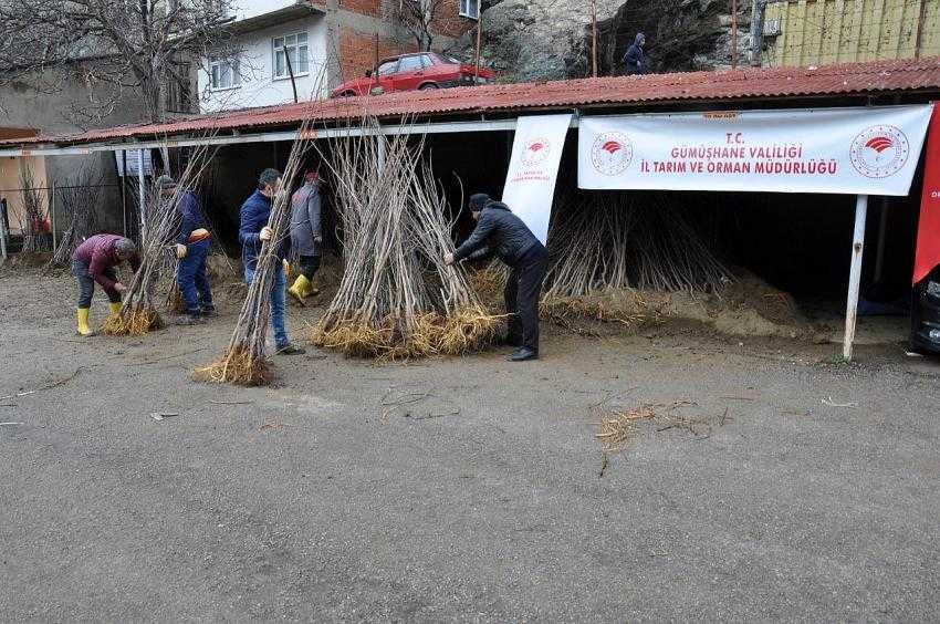 İl Tarım ve Orman Müdürü Edip Birşen yaptığı açıklamada, Bakanlığımız ve İl Özel İdare destekli projeler ile Gümüşhane’nin tarımsal hasılasının her geçen gün arttığını kaydeden Birşen 2018 yılında başlatılan proje kapsamında Gümüşhane'deki mevcut yerli elma (göbek, misket, arap kızı, söğüt, mahsusa, değirmen, yaz elmaları), armut (Cinci, Hacıhamza, Mehrani, Arpa, Menendi, beyaz dut ve kara dut çeşitlerinden alınan aşı kalemler Tarım ve Orman Bakanlığı Erzincan Bahçe Kültürleri Araştırma Enstitüsü Müdürlüğüne gönderilerek uygun anaçlara aşılama yapıldı. Bu anaçlardan yetiştirilen 6 bin 100 adet fidanların İlimiz üreticilerine yeni bahçe tesisi yapmaları için dağıtımını yaptıklarını söyledi.