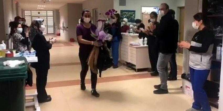 Kelkit ilçemizde Kelkit Devlet Hastanesinde görev yapan Kadın Doğum Uzmanı Ö.E.K, 7 günlük koronavirüs tedavisinin ardından meslektaşları tarafından alkışlarla taburcu oldu.